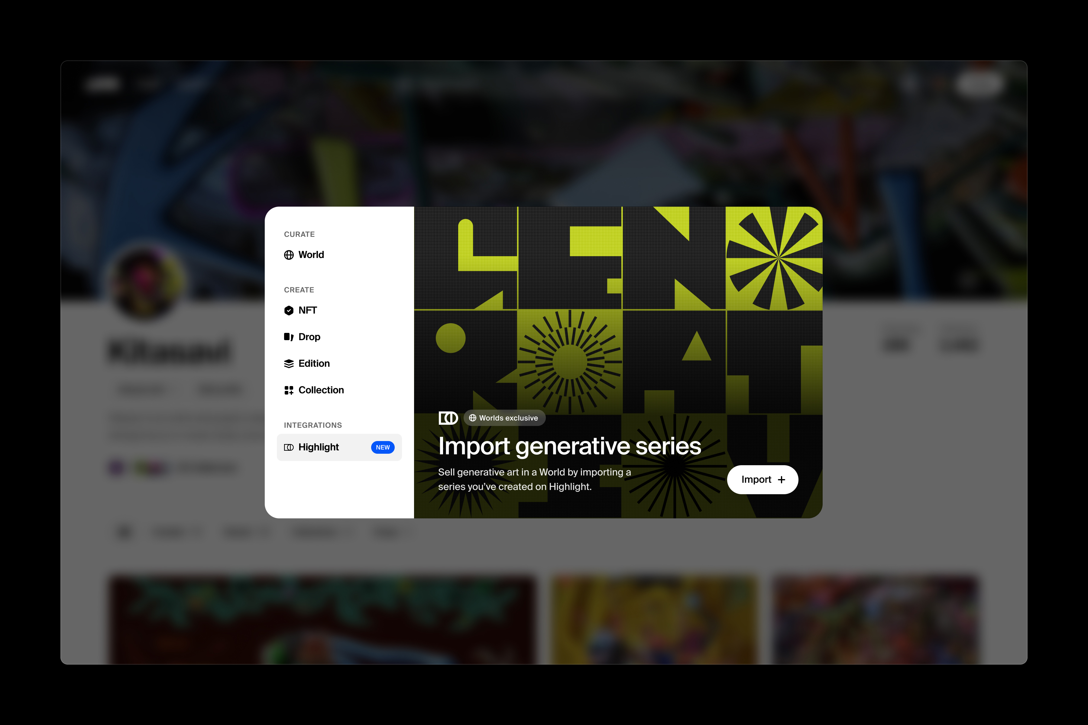 Your Highlight generative series is now imported! You can now view your drop on your profile and in the world.