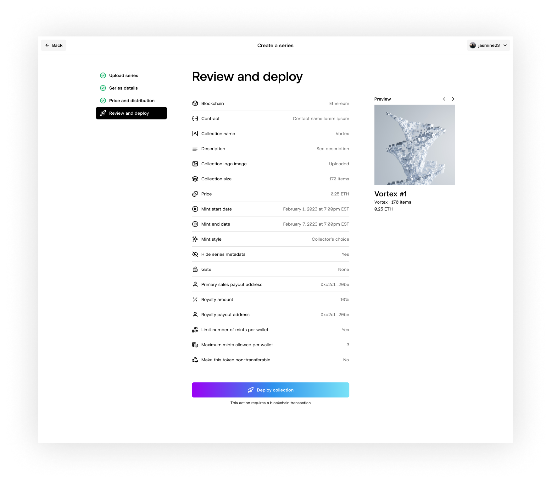 Review and deploy your collection once all the details have been set and finalized.&#x20;